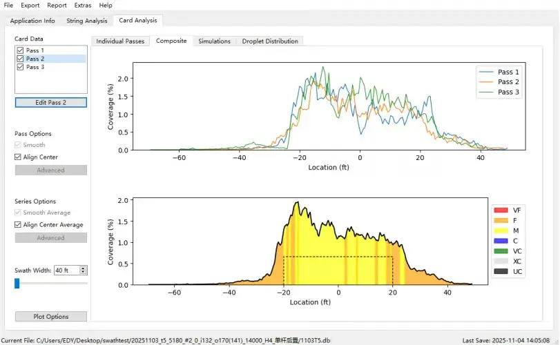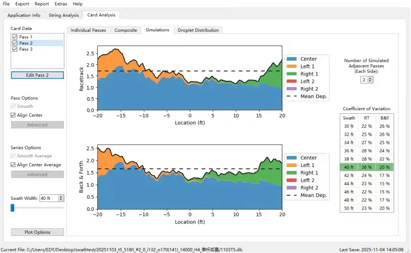 An initial configuration of the boom demonstrated a spray swath of 50 feet with an application CV of 20%.